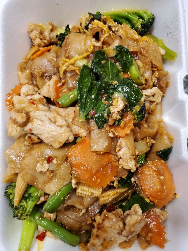 Introducing the menu at Thai Diner, a popular Thai restaurant in Richmond, VA. This casual eatery offers a variety of traditional Thai dishes with many vegetarian options available. The menu includes appetizers like Satay and Fish Cake, soups such as Tom Yum Goong and Tom Kha Gai, and salads like Thai Tossed Salad and Yum Woon Sen. Customers rave about the freshness and deliciousness of the food, with standout dishes like the pad Thai, spicy noodle soup, and drunken noodles receiving high praise. The generous portion sizes for takeout orders make this spot a go-to for satisfying Thai cuisine cravings. With quick and attentive service, Thai Diner provides a pleasant dining experience for both individuals and groups. Don't miss out on this gem for flavorful Thai dishes in a welcoming atmosphere.